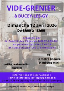 Le comité des fêtes de Bucey-lès-Gy a pour habitude de travailler en étroite collaboration avec différents partenaires comme : la mairie de Bucey-lès-Gy, les Z’animations, l’ACCA. Vide-grenier, marché de Noël…